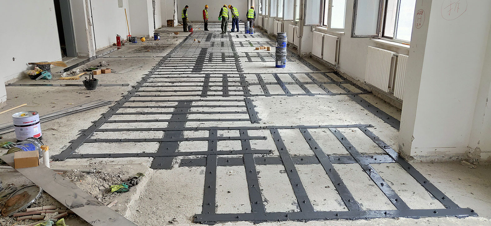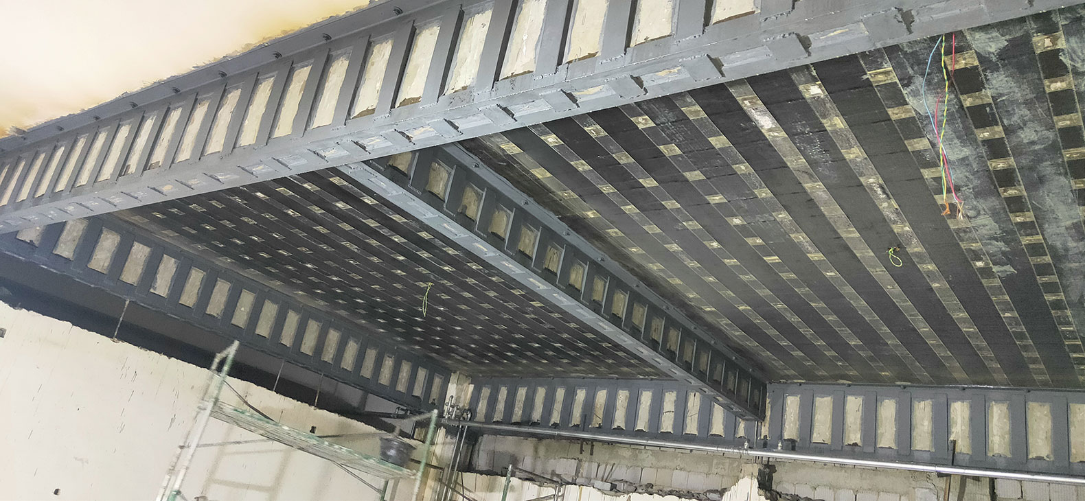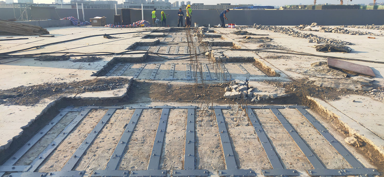 粘鋼加固技術(shù),是采用具有良好性能的建筑結(jié)構(gòu)膠,把鋼板與混凝土牢固地粘結(jié),并能有效地傳遞應(yīng)力形成整體來(lái)聯(lián)合工作,從而提高混凝土受彎構(gòu)件的承載能力和構(gòu)件剛度(其正截面受彎承載力提高幅度不應(yīng)超過(guò)40%)。